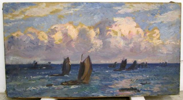 Painter and watercolorist Gifford Beal gained widespread recognition during the first half of the twentieth century for his gentle, warmly lit depictions of American landscapes and urban views. His style and subject matter shifted throughout the years, from austere seascapes featuring monumental figures to dynamic views of New York’s freight yards. Friend and fellow painter Barry Faulkner said Beal’s work showed “the eternal pleasures of work and leisure, the casual enjoyable incidents which add so much to life’s richness.”
