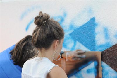 Artist Jill Galarneau, whose colorful, collaged works build a visual language to express memory and experience is in the Art in Embassies exhibition at Ambassador Millers Residence in Gaborone. Galarneau traveled to Botswana with fellow Cranbrook Academy graduates Jacquelyn Gleisner and Peter Clouse, to participate in an eight day artist exchange. It was an unusual and productive interaction that took place in Gaborone, the Capitol of Botswana, and in Maun, to coincide with the annual Maun International Art Festival. A long trip brought the three artists to Gaborone on Monday morning, where a few hours after arrival, they were ready to present an overview of their work at the Thapong Visual Art Centre, as an introduction to the workshops that were scheduled for the following three days. During her presentation at the opening event, Galarneau showed examples of her work, as well as images of things that inspire, including traditional quilts and lace, works by other contemporary artists, and daily snapshots of inspiring ice cream cones, advertising, and streetlights. She also shared images of her studio space, and neighborhood where the studio is located. During the three day workshop that followed, Galarneau introduced a project combining geometric abstraction with personal narrative to create uniquely shaped stencils. The participants in her workshop used the stencils they developed to create marker drawings, which were exhibited on the large wall of the outdoor communal space, for everyone to see and review.
