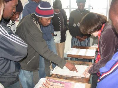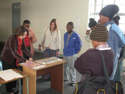 Her schedule was full and included visits to many local artist cooperatives, such as Tswaranagang Community Project. Wohl’s visit also comprised of meetings and hands-on workshops with students and teachers at Pretoria Technikon’s Art Department. She gave multiple lectures during her visit, covering topics as diverse as commissioned work for artists and the role of art in the resistance to apartheid. At the Tswaranagang Community Project, a women’s bead cooperative, Wohl found much in common with the artists during discussions of their materials. During this time she made connections with people on all levels of society, talked of collaboration with South African fiber artist Celia De Villiers and impressed people with her knowledge of the history and culture of the country.