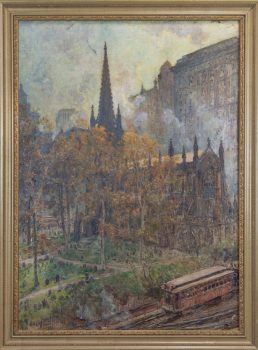 Colin Campbell Cooper was born in Philadelphia, Pennsylvania in 1856. Inspired by the art he saw at the 1876 Philadelphia Exposition, he began his studies at the Pennsylvania Academy of the Fine Arts under Thomas Eakins and continued at the Académie Julian and Ecole Delecluse in Paris. He spent much time traveling and painting throughout Europe; however, many of the paintings from this time were lost in a fire in 1896.