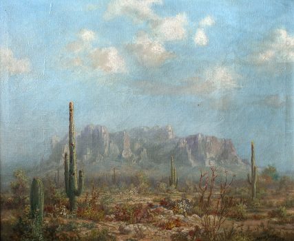 David Swing was an engraver, painter, and muralist as well as an accomplished musician. Born in Cincinnati, Ohio, he moved as an adult to California, where he served as president of the Los Angeles Engraving Company from 1905 until 1914, and maintained a studio in Pasadena. In 1917 Swing moved to Phoenix, Arizona, where he taught at Phoenix Junior College and participated in the Federal Emergency Relief Administration (FERA), a program that ran from 1933 to 1935, to alleviate adult unemployment during the Great Depression. Swing painted murals, and many independent desert scenes. His work can be found in the Phoenix Public Library System and the Phoenix Masonic Temple.