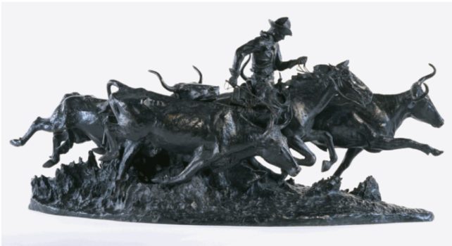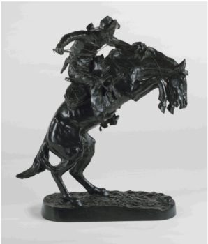 Many of Remington’s paintings intended for illustration were rendered in monochromatic tones, simplifying the process of transferring them into print. Additionally, black-and-white compositions would have heightened a viewer’s sense of reportage through the paintings’ visual similarities to photographs. Another defining aspect of Remington’s oeuvre is the emotional power with which he painted horses in motion. Compositions in which riders on horseback seem to rush out of the picture plane toward the viewer proved popular with his audience.
