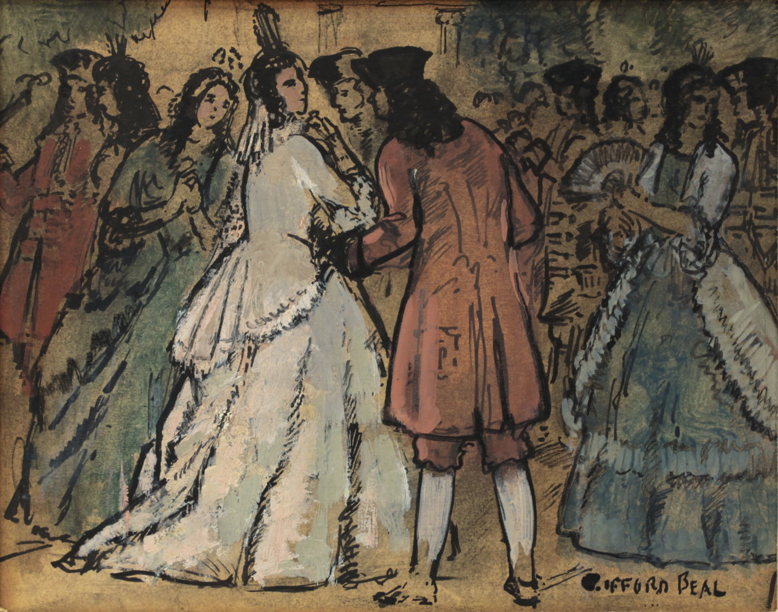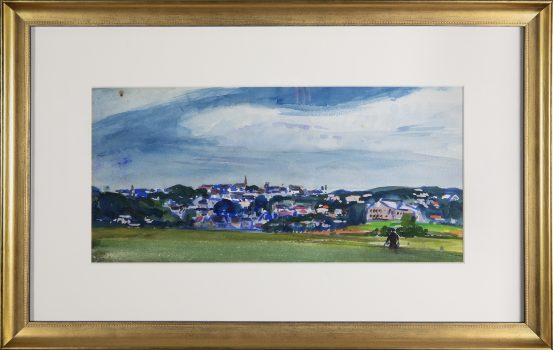 Painter and watercolorist Gifford Beal gained widespread recognition during the first half of the twentieth century for his gentle, warmly lit depictions of American landscapes and urban views. His style and subject matter shifted throughout the years, from austere seascapes featuring monumental figures to dynamic views of New York’s freight yards. Friend and fellow painter Barry Faulkner said Beal’s work showed “the eternal pleasures of work and leisure, the casual enjoyable incidents which add so much to life’s richness.”