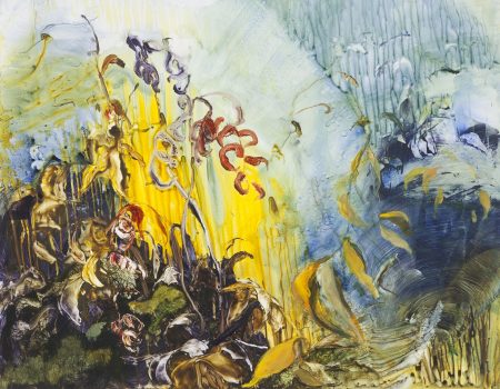 Ilana Manolson uncovers the overlooked edges of the natural world, capturing nature’s essence in shifts of light and color. She paints momentary impressions of nature as they unfold through the various seasons. Combining realist elements with fields of color abstraction, she often depicts her subjects on the verge of change as it swings its pendulum between order and disorder. Her largescale oil paintings celebrate the unexpected vibrancy of the weedy margins of swamp and sky, the mysterious interplay of lightness and depth, growth and decay, firmness and fluidity, among unfurling fronds, fallen leaves, and elusive reflections.