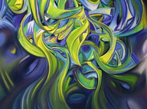 Kristin Pluhacek regularly exhibits her large-scale drawings in the Midwest, where her work is represented in numerous public and private collections. As an amateur horticulturalist, Kristin’s studio practice in pastel drawing involves regular interaction with the plant life in her backyard garden. There, she observes the plants she has introduced as they expand in unexpected ways within the limitations she imposes, and tries to absorb and visually record the simultaneous experiences of the observer and the observed. Her work with ribbons and pools as subjects is also strongly rooted in this type of experiential observation, with the act of looking leading toward discovery of the strong underlying design that connects everything.
