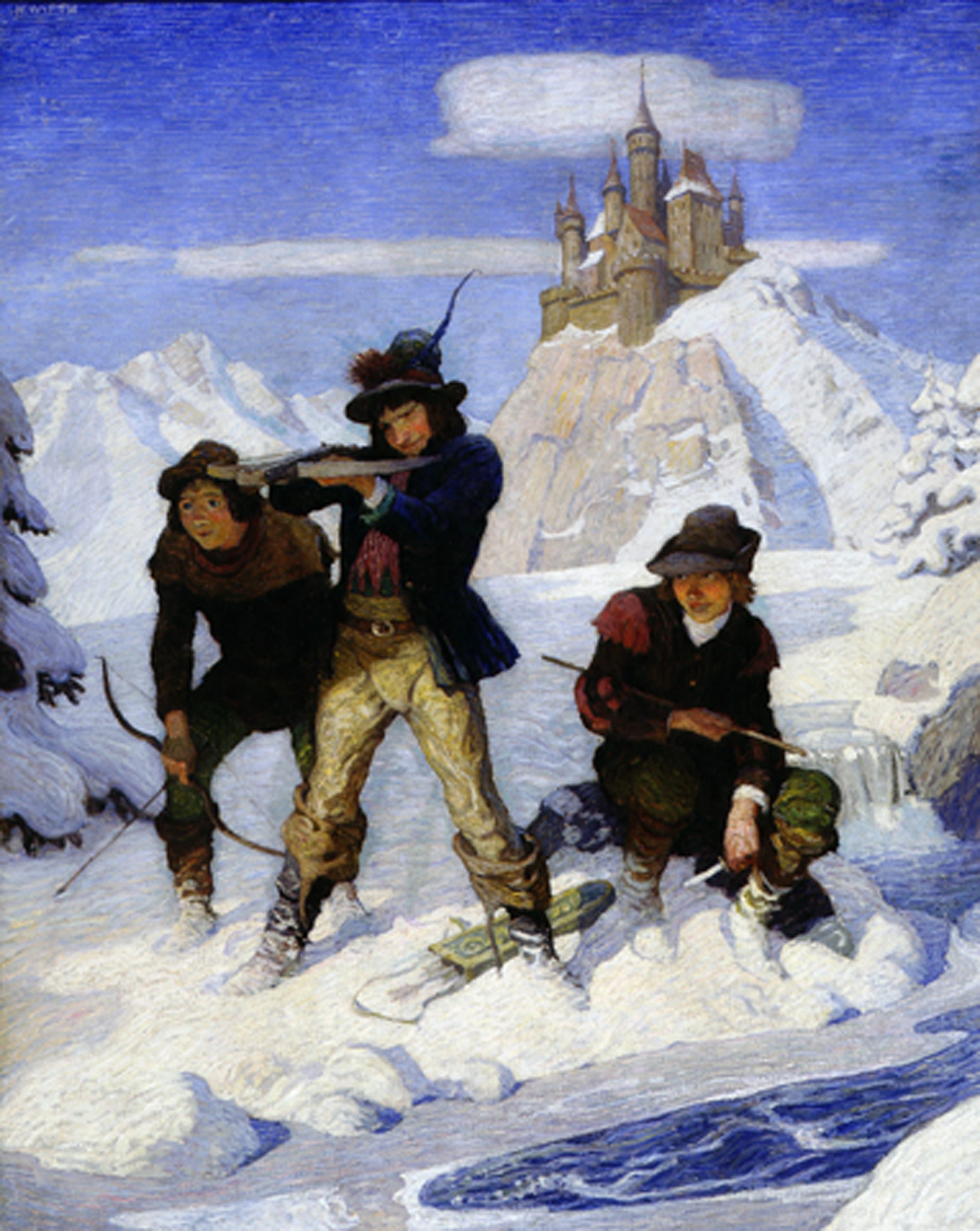 Newell Convers (“N.C.”) Wyeth was one of the foremost twentieth-century American draughtsmen and painters, who “skillfully blended romance and realism into his pictures”—whether they be literary heroes, still lifes, or landscapes of Chadds Ford, Pennsylvania, and Port Clyde, Maine. An expert illustrator and colorist, Wyeth “explored various styles and mastered techniques which range from the broadly brushed to the near photographic.” With meticulously detailed and colorful brushstrokes, his figures and landscape settings in each painting generate a “veritable tapestry of vibrant patterning.”