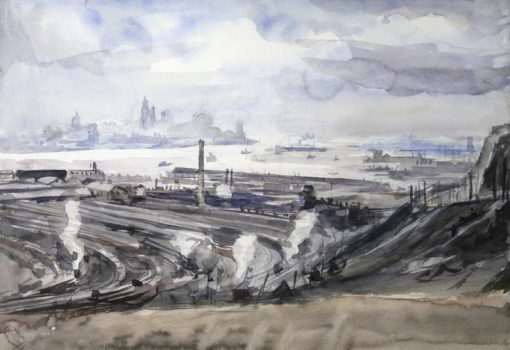 French American painter Reginald Marsh conveyed the frenzy of twentieth-century urban life in his renderings of New York City’s Coney Island, subways, and ship harbors, plus marginalized groups such as women and those experiencing homelessness. He is regarded as an American Scene painter, one of a number of American artists who portrayed specific regions of the country in a realistic style.