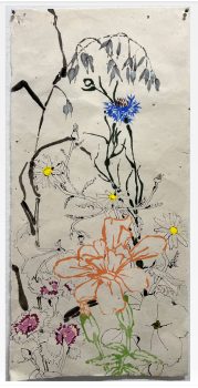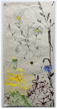 Robert Kushner’s artwork centers around ornamentation and decoration. His paintings of organic material abstracted and graphically depicted are influenced by European textiles and global artists. “I never get tired of pursuing new ideas in the realm of ornamentation. Decoration, an abjectly pejorative dismissal for many, is a very big, somewhat defiant declaration for me…The eye can wander, the mind think unencumbered through visual realms that are expansively and emotionally rich. Decoration has always had its own agenda, the sincere and unabashed offering of pleasure and solace,” he said.