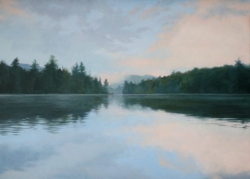 Thomas Aldren Dingman Watson is drawn to the elemental qualities of nature, an interest he credits to a lifetime spent outdoors and that shapes his focus on the landscapes where water, land, and air converge. “Cape Cod Light” depicts Highland Light in North Truro, Massachusetts, the oldest and tallest lighthouse on Cape Cod, originally built in 1797 to mark the dangerous sandbars and shoals along the coast. Of the work, Watson writes, “When I was a boy, I lived nearby, and the beam from this lighthouse flashed across my bedroom ceiling as the lens rotated. To me, it represents both a comforting emblem of [protection] and an ominous reminder of the dangers of the untamed Atlantic Ocean.”