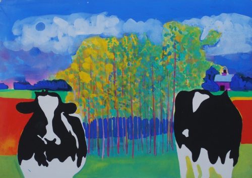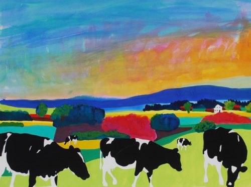 Woody Jackson, Autumn Lights, Gouache, watercolor on paper, Overall: 26 × 35in. (66 × 88.9cm), Courtesy of the artist, Cornwall, Vermont