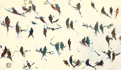 Ellie Harold, Autumnal Meetings, Oil on canvas, Overall: 36 × 60 × 1 3/8in. (91.4 × 152.4 × 3.5cm), Courtesy of the artist, Frankfort, Michigan