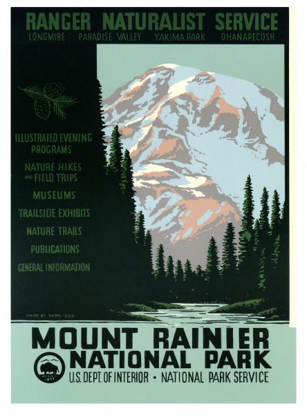 Chester Don Powell, Mount Rainier National Park, Silk Screen on board, Overall: 23 × 17in. (58.4 × 43.2cm), Collection of Art in Embassies, Washington D.C., Gift of Ranger Doug’s Enterprises, Seattle, Washington