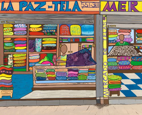 Cynthia Farrell Johnson, La Paz Tela, Gouache, acrylic, and fabric, 12 × 9 3/4in. (30.5 × 24.8cm) unframed; 18 × 15 1/2in. (45.7 × 39.4cm) framed, Courtesy of the artist, Silver Spring, Maryland