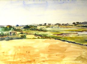 A native of Wujin, Jiangsu Province, China, Wang Chi-Yuan was among the first generation of Western-style painters and a key figure in the New Art Movement to revolutionize tradition. Fleeing the war within his country, he landed in San Francisco in 1942. That summer he visited the Yosemite area, a “stupendous place of great vistas and tremendous beauty.” He continued, “In these mountains I found the qualities of peace and beauty to which I could respond, and in the great quiet and calm I could work again.” In November 1942, he moved to New York, which became home to him. After the Metropolitan Museum of Art borrowed one of his paintings for a traveling exhibition, he decided to make good of this increased interest in Asian art and established a school where Chinese brushstroke would be taught. It was here that his new beliefs became evident: “A new joining of Eastern materials and Western hands to form not just a mixture of old things, but a wholly new art-a language which both East and West understand-and to which both contribute.”