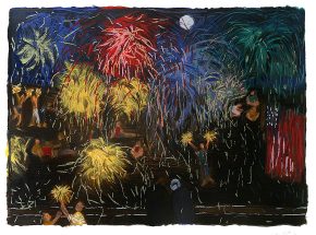 I am happiest when I am making pictures. I respond to life with art. I am a storyteller-that’s how I engage in the world. My figures are prototypes inspired by individuals. Character is in the gesture. Working flat, the challenge is to show some depth. I like an open-ended story.