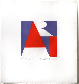Widely popular for his sculpture, abstract painting, and pop art, Robert Indiana was a “self-proclaimed American painter of signs” whose work examines American identity, personal history, and the power of abstraction. While living and operating his studio in the Manhattan neighborhood of Coenties Slip, he scavenged for discarded materials in abandoned warehouses to create his assemblages. His discovery of nineteenth-century brass stencils led to the “incorporation of brightly colored numbers and short emotionally charged words into [his work] and became the basis of his new painterly vocabulary.”