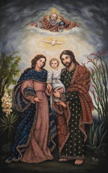 For more than thirty years, Ruth Stricklin has had a varied career in the arts, working as an interior decorator, muralist, and theater set designer before devoting her practice to sacred subjects. In 2014, she and her husband, Geoffrey, founded New Jerusalem Studios in Phoenix, Arizona, in response to renewed interest in traditional Catholic liturgical art. Drawing on iconography and the traditions of West and East, Stricklin’s work explores themes rooted in Biblical tradition.